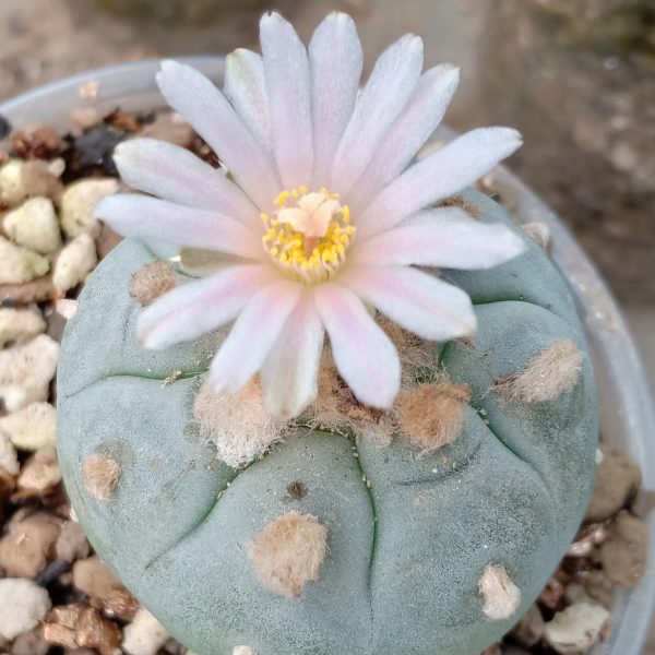 • Species & Origin: Lophophora williamsii var. Starr County SB 854, Starr County, South Texas, USA; flush-to-ground, soft bluish-green, button-shaped, slow to cluster.